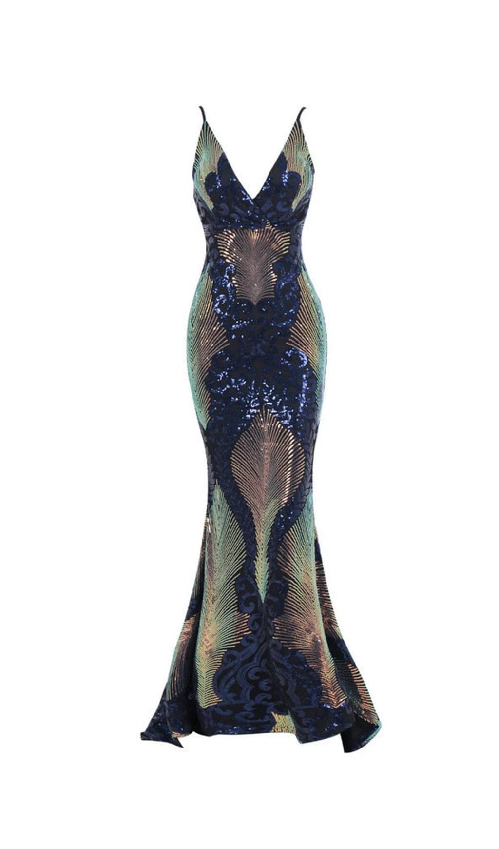 What better dress to wear to a dinner party than this? The fit and good cut makes it perfectly fit the curve of your body. highlighting you in good proportion and with a nice bump. The dress was a dark blue base. with lots of sequins. which made it look like a sea in the moonlight. The dress has a pattern like peacock feathers. gorgeous and elegant. changing colors as the light changes. The backless design allows people to appreciate the curves of your back. Wearing this dress. even if people only see you from the back. is enough to look amazing.