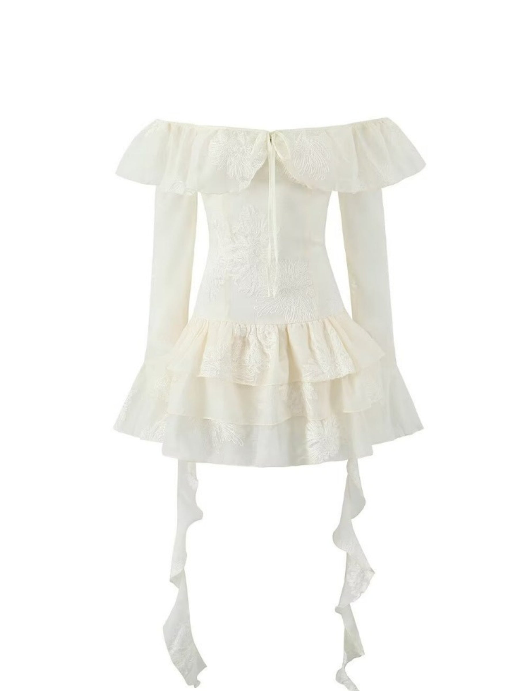 Channel timeless romance with the Venice Off-Shoulder Ruffle Dress. Crafted from soft ivory fabric. this dress features an enchanting off-shoulder neckline with delicate ruffle detailing. The tiered skirt flows gracefully. adding movement and a touch of vintage charm. Perfect for dreamy occasions or a standout date night look.