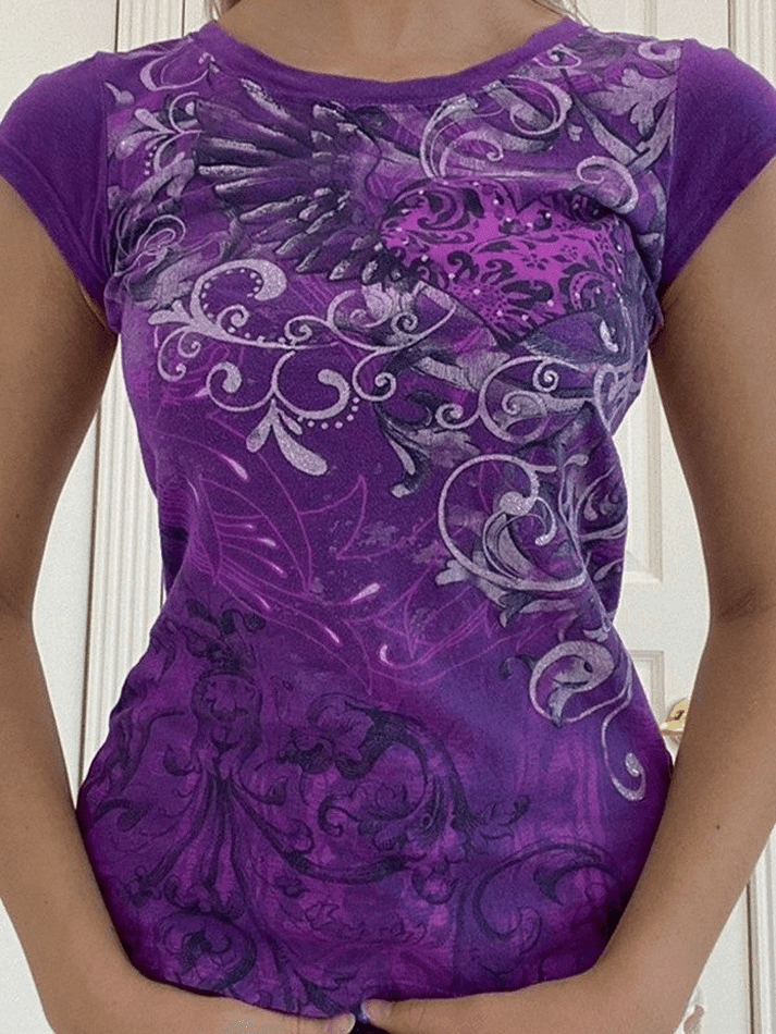 Description:Step into the 90s with this vintage floral baby tee. Embrace the fitted silhouette. tank sleeves. and charming floral print design. Perfect for casual outings and capturing the Y2K-inspired vibes.