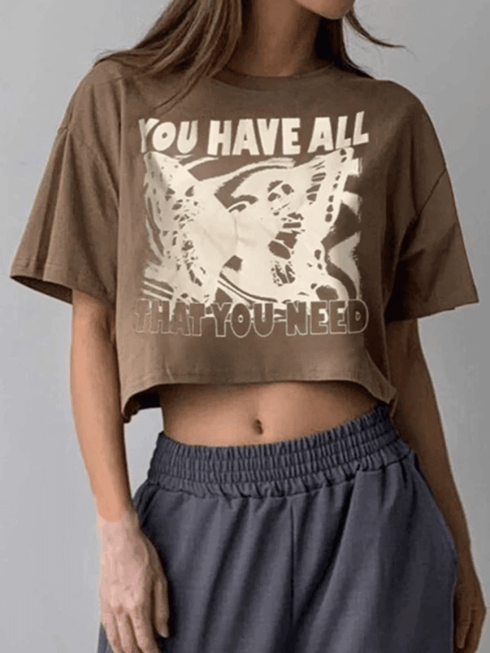 Description: Embrace the retro vibes with our Vintage Letter Print Crop Top! This casual yet trendy piece is perfect for the Gen Z fashionista. Crafted from polyester. it offers a loose fit and a comfortable crew neckline. The short sleeves and boxy silhouette add a relaxed and stylish touch. With its unique letter and screen pattern on the front. this top is a must-have for the modern girl who loves a vintage twist.