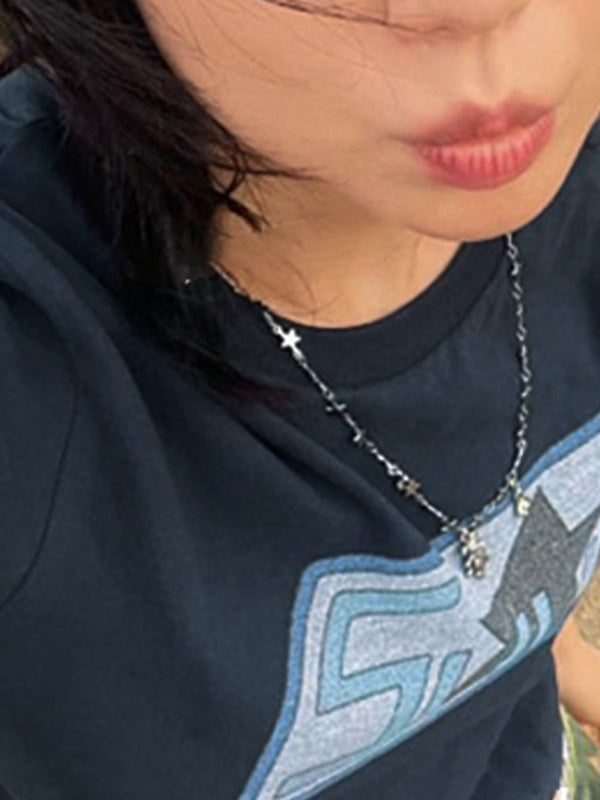 -Adorned with star logo motifs on the front. enhancing the shirt's appeal.
