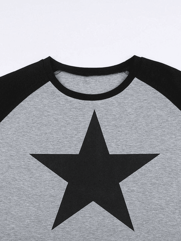 Description: Get ready to shine like a star in our Starstruck Y2K Long Sleeve Tee. This trendy and preppy tee features a captivating star pattern on the front. complemented by contrast raglan sleeves. Designed with a relaxed silhouette. it's perfect for back-to-school fashion or casual streetwear. Stay effortlessly stylish in this must-have piece.