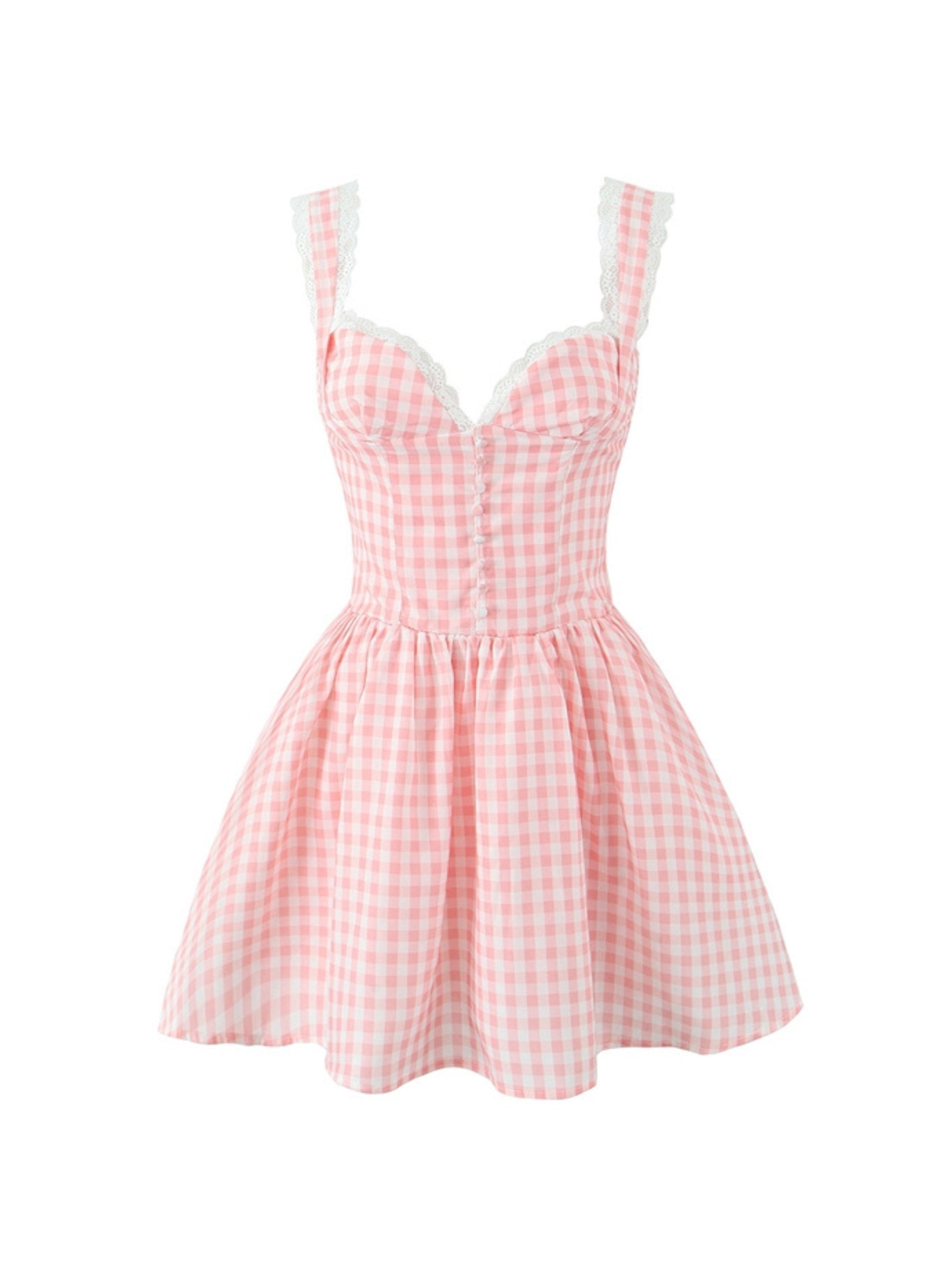 Get ready to turn heads in our Wendy Mini Dress! With its sleeveless design and wide straps. this dress is perfect for those hot summer days. The lace detailing adds a touch of elegance. while the A-line gown skirt and high waist will give you a flattering silhouette. Embrace your inner French retro style with the Wendy Dress from our Aesvs Summer in Bloom Collection.