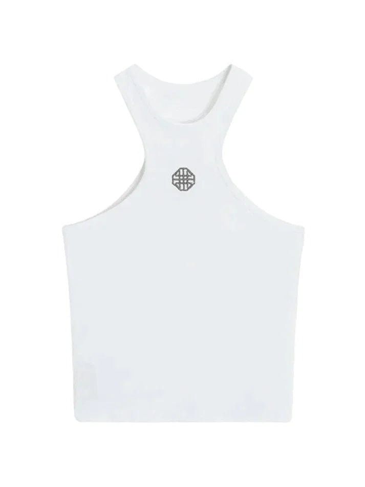 Description: Get trendy with our White Logo Ribbed Crop Top. Made from stretchy ribbed fabric. this classic tank top features a slim fit and a racer back design. With its logo detail on the center front. it's perfect for any casual or street style outfit. Stay stylish and comfortable all day long. Order yours now!