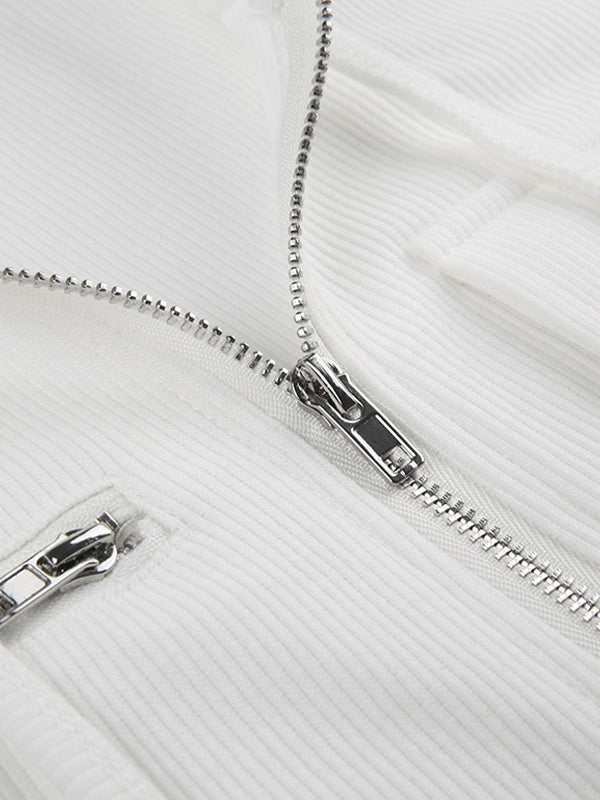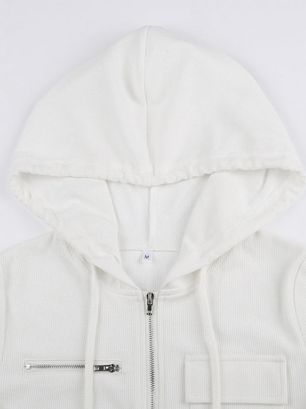 White Zip Up Hooded Cropped Knit Top