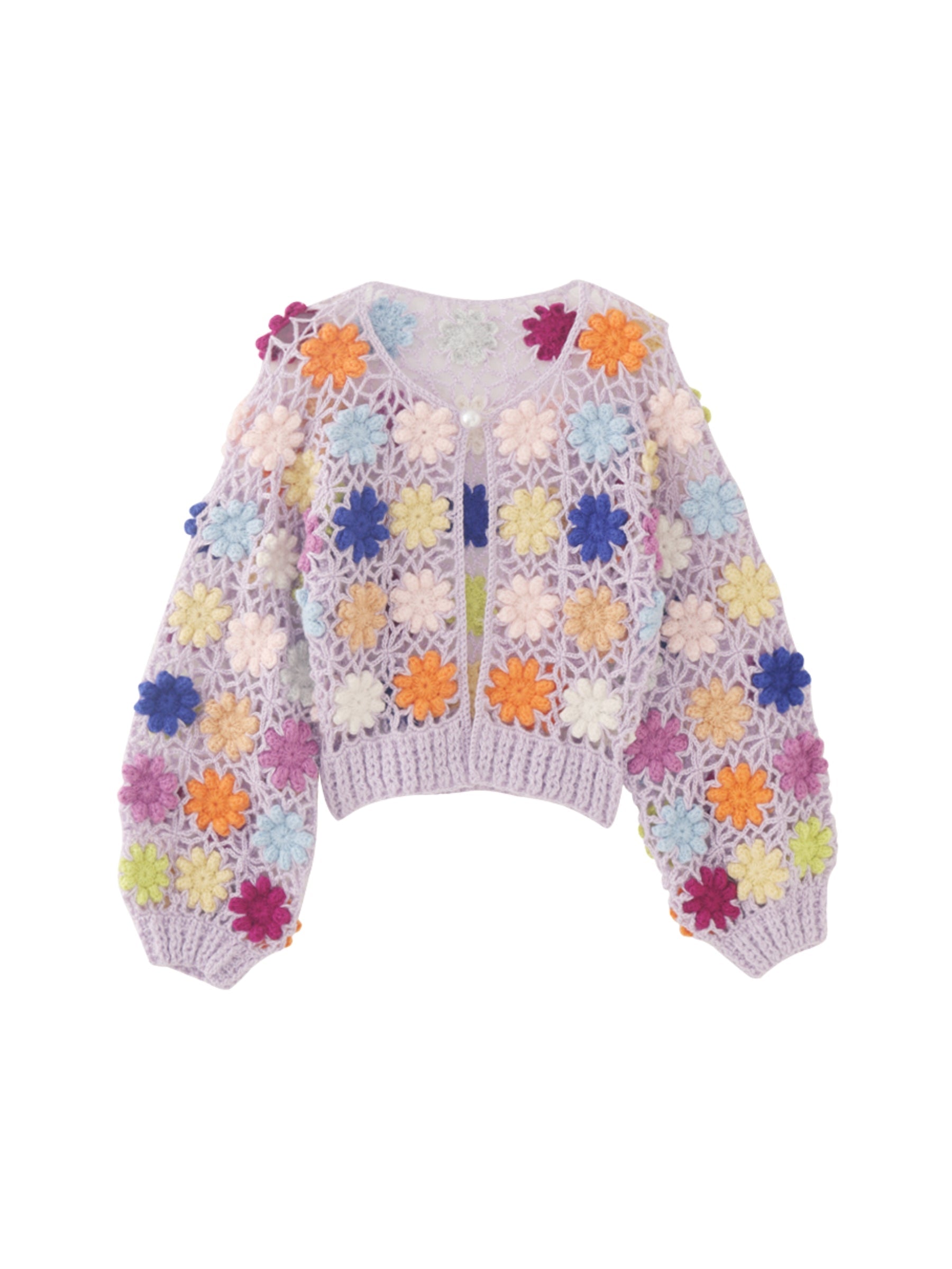 Take your style up a notch with the Wivona Crochet Cardigan. This handmade crochet design features vibrant multi-color floral embellishments and a lightweight. breathable fabric. Stand out with the button-up front and pearl accents. available in black and lavender. Perfect for layering in cooler weather from the Aesvs Winter Collection.