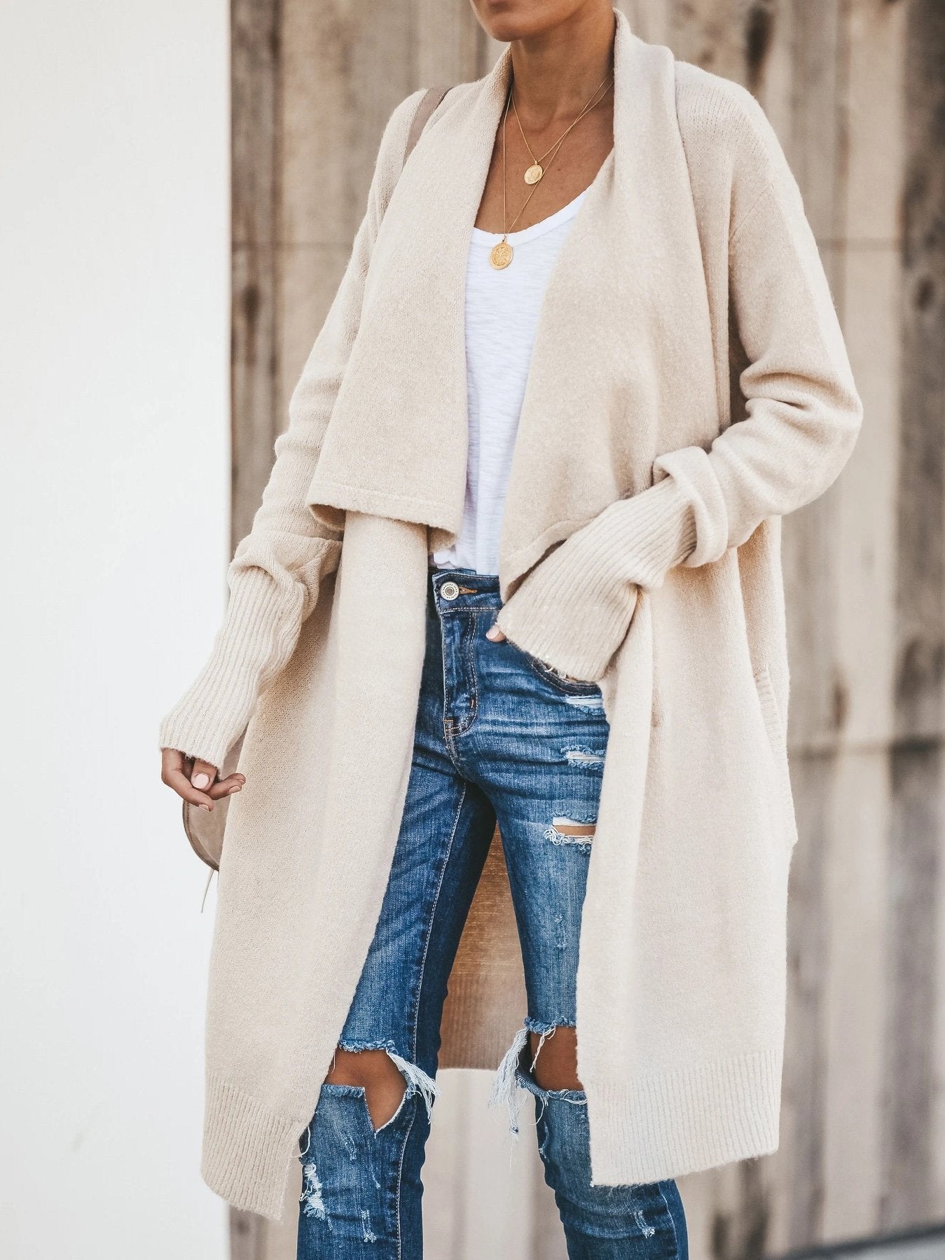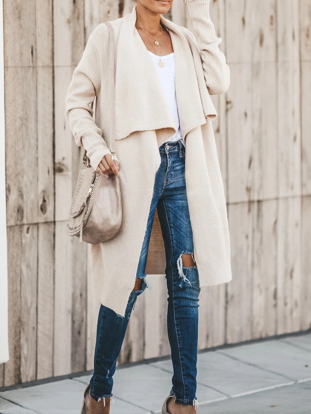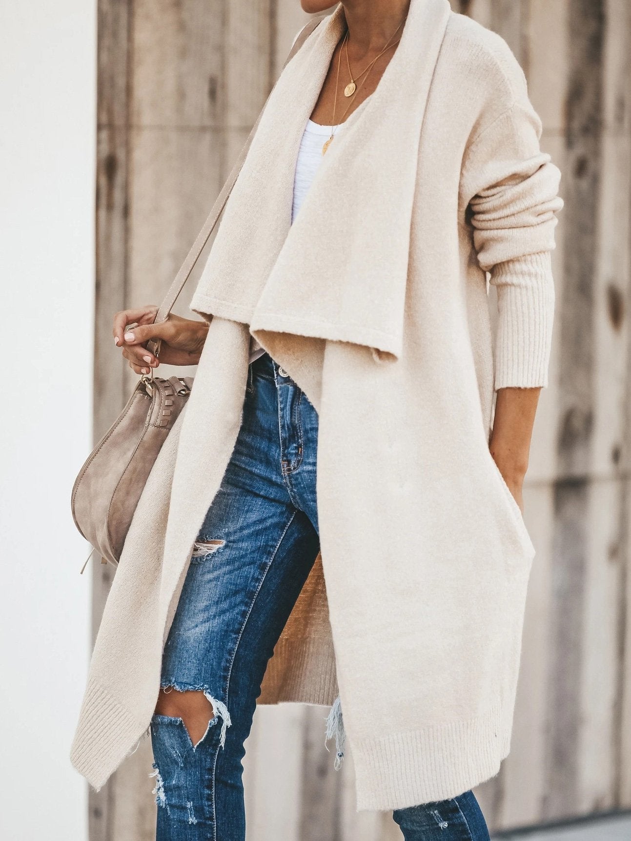 Women's Coats Casual Lapel Long Sleeve Mid-Length Cardigan Coat
