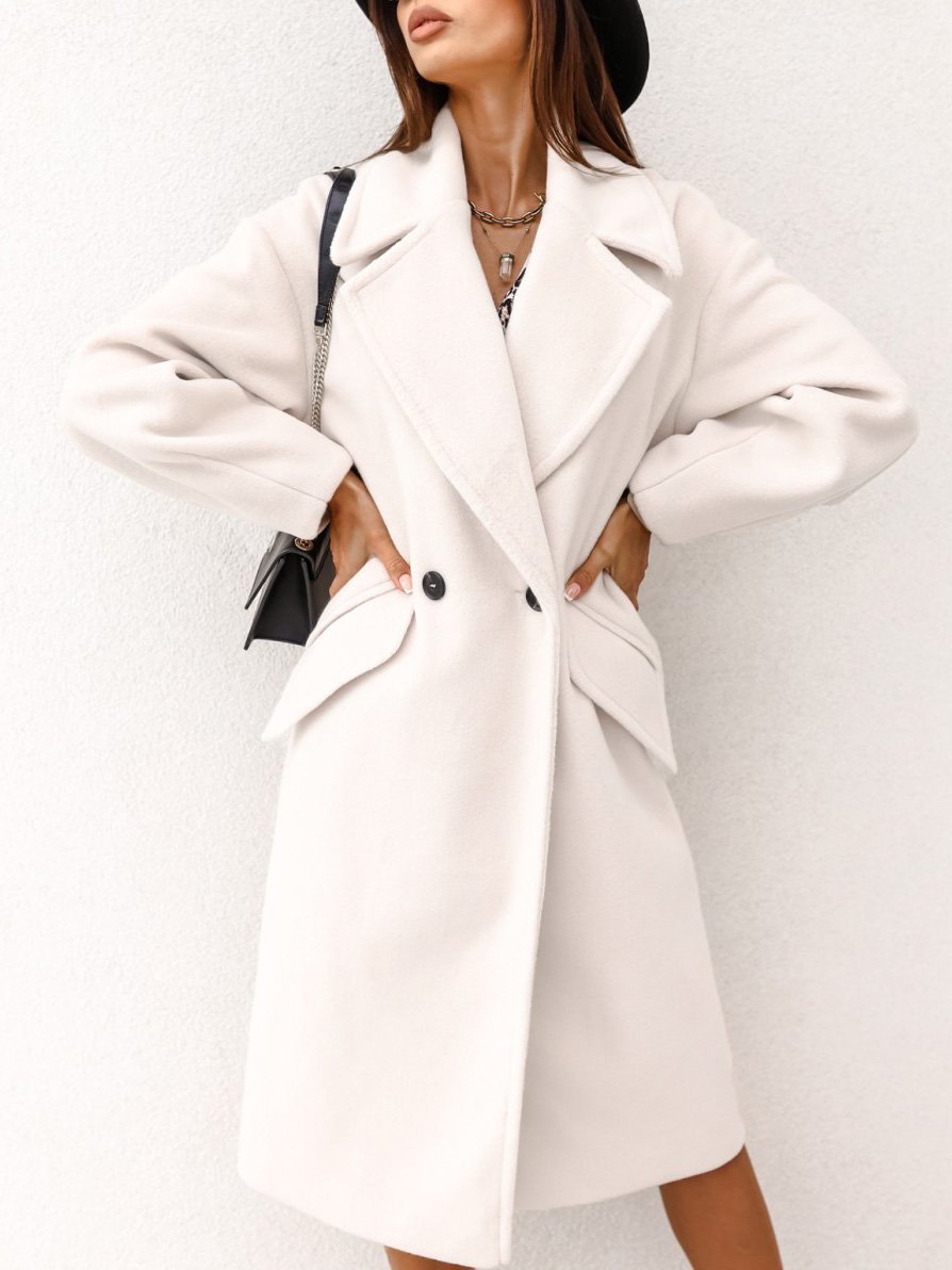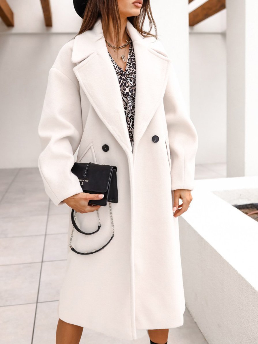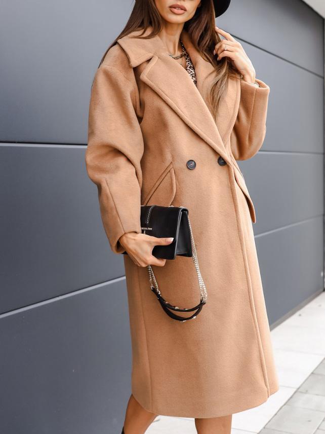 Women's Coats Double-Breasted Suit Collar Long Woolen Coat