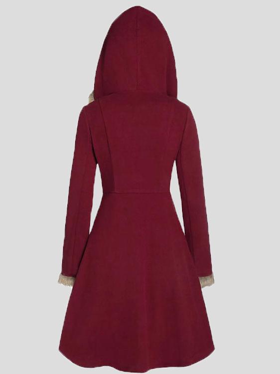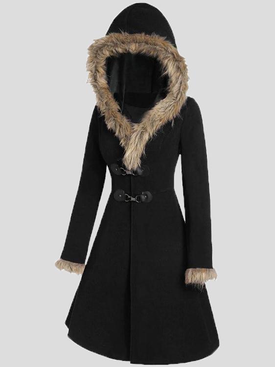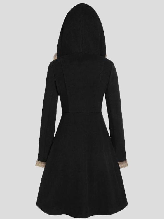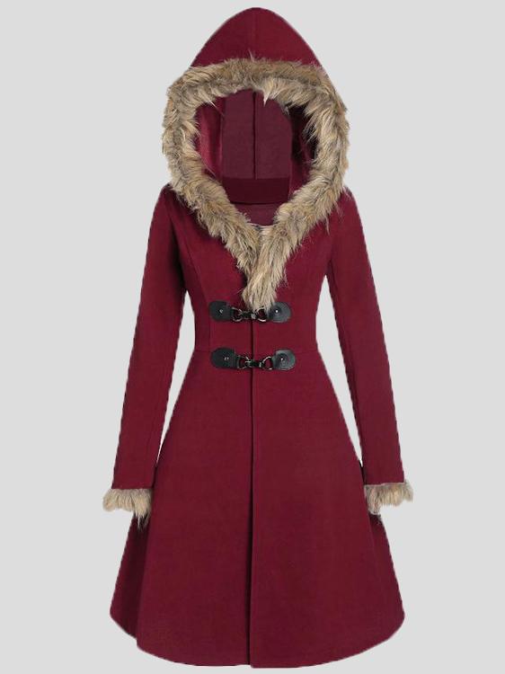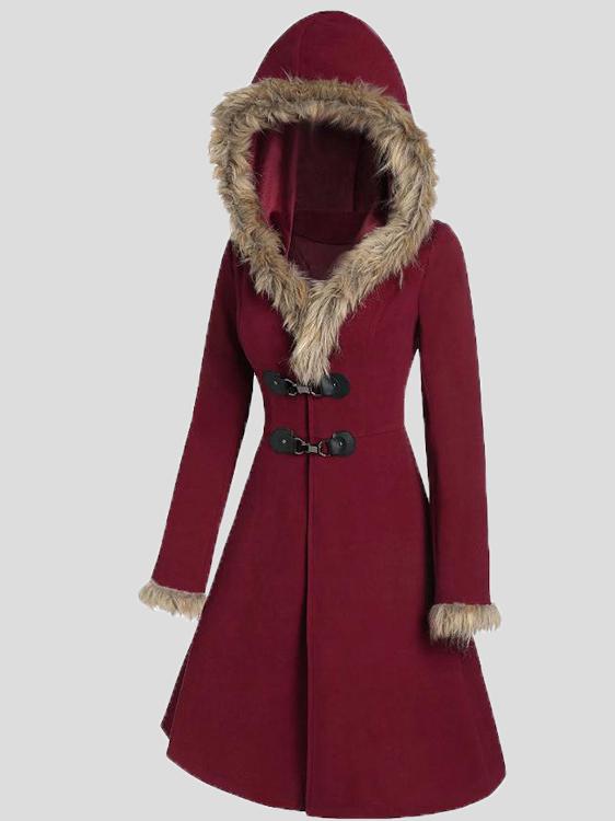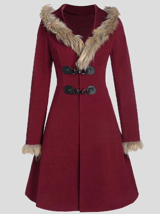 Women's Coats Fur Hat Side Sleeve Button Woolen Mid-Length Coat