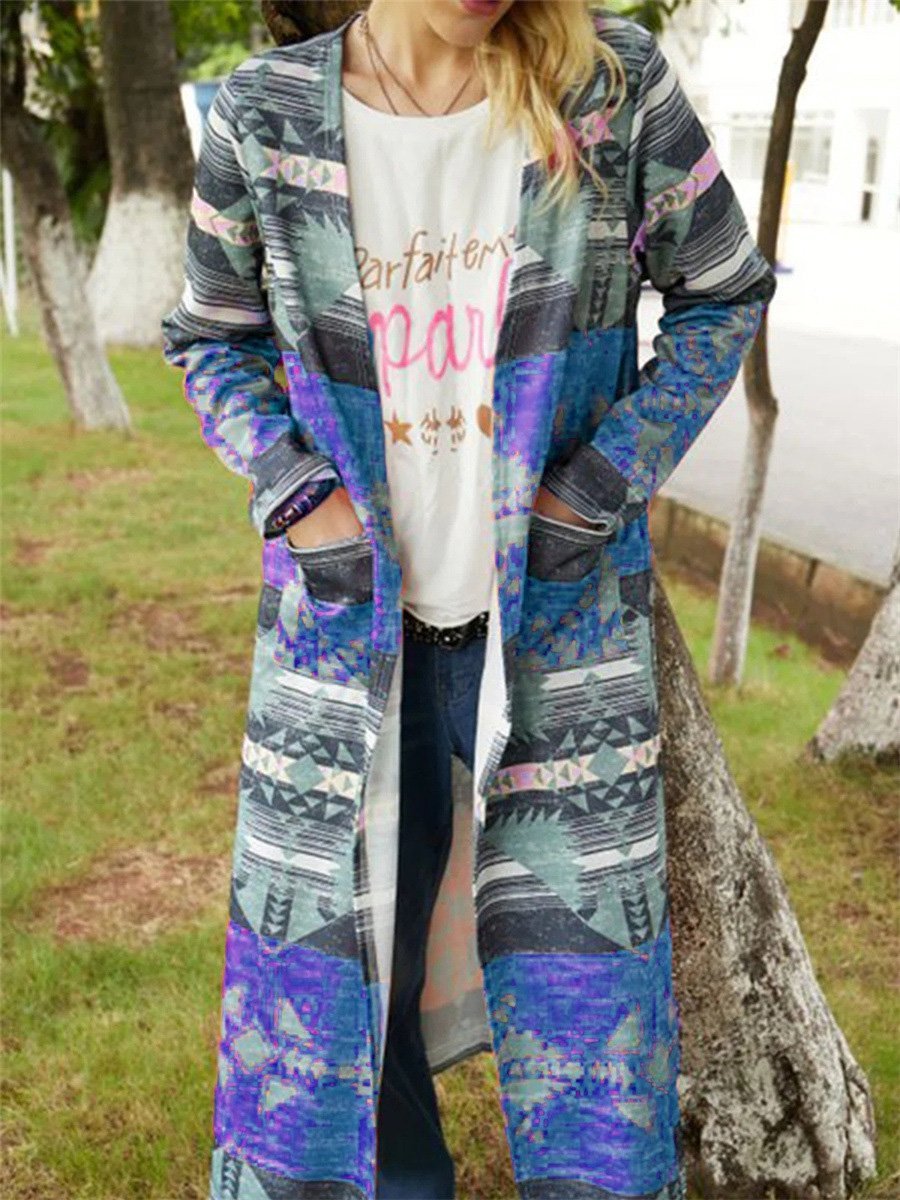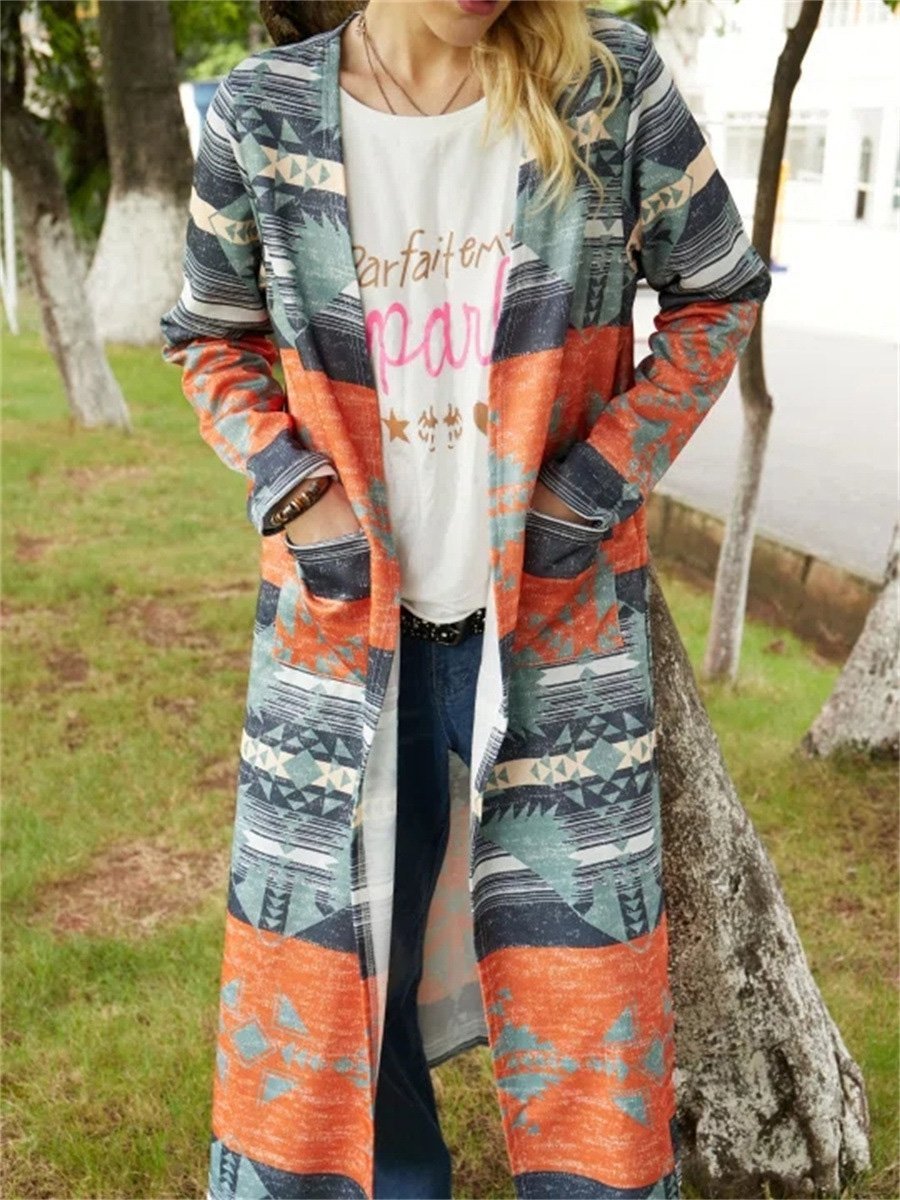 Women's Coats Geometric Print Cardigan Is Thin And Long Trench Coat