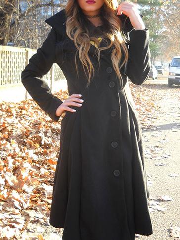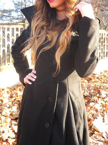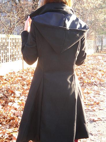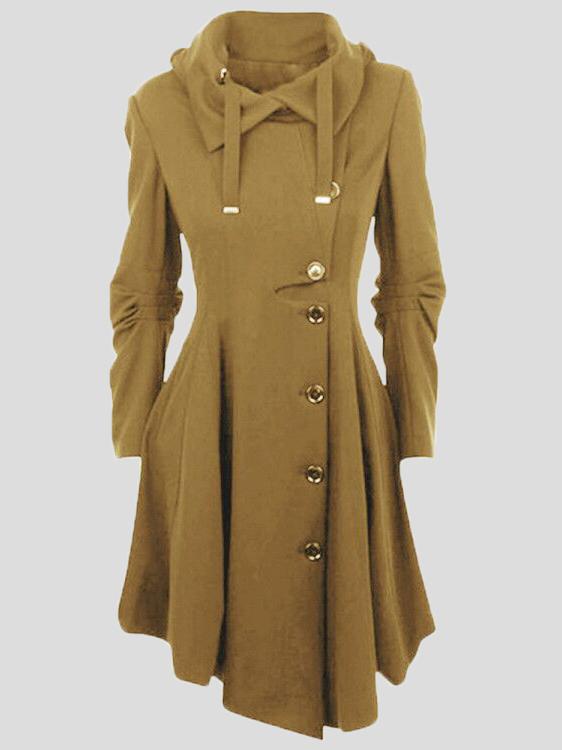 Women's Coats Irregular Pocket Drawstring Buttons Hooded Coat