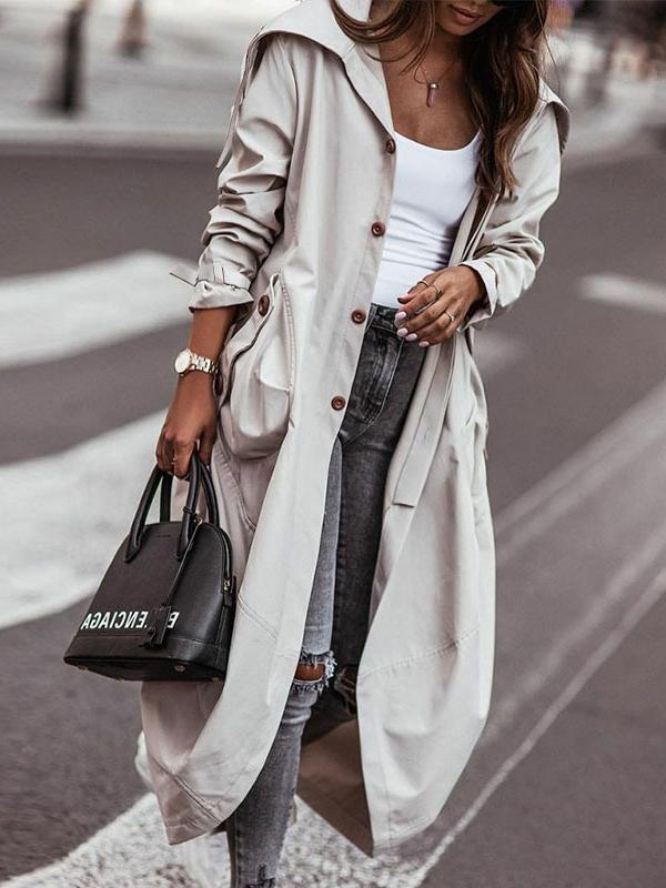 Women's Coats Lapel Button Pockets Irregular Mid-Long Coats