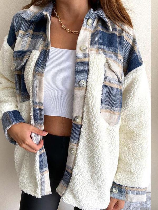 Women's Coats Leopard Plaid Print Plush Stitching Long Sleeve Coat