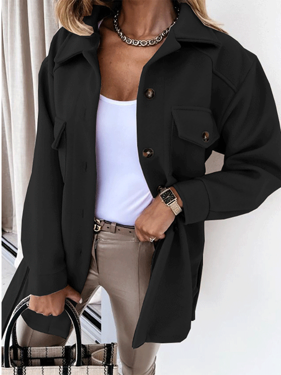 • Feature: Long Sleeve. Solid. Lapel. Button. Belted