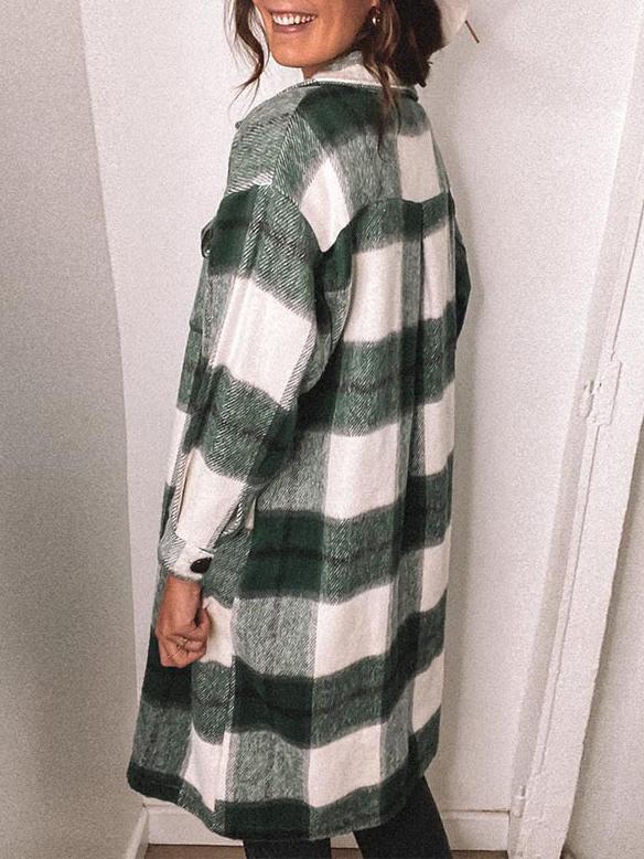 Women's Coats Loose Button Plaid Long Sleeve Mid-Length Coat