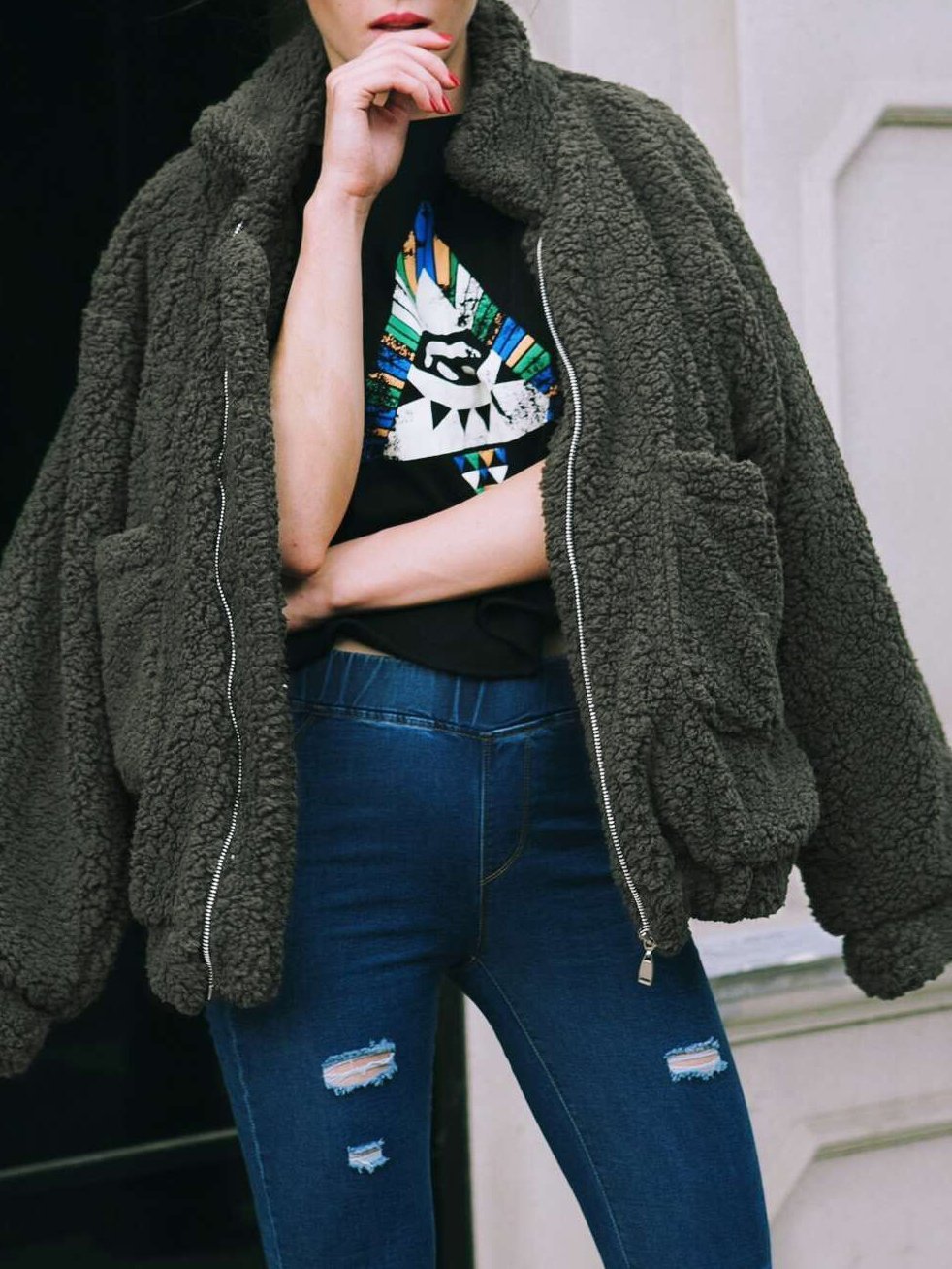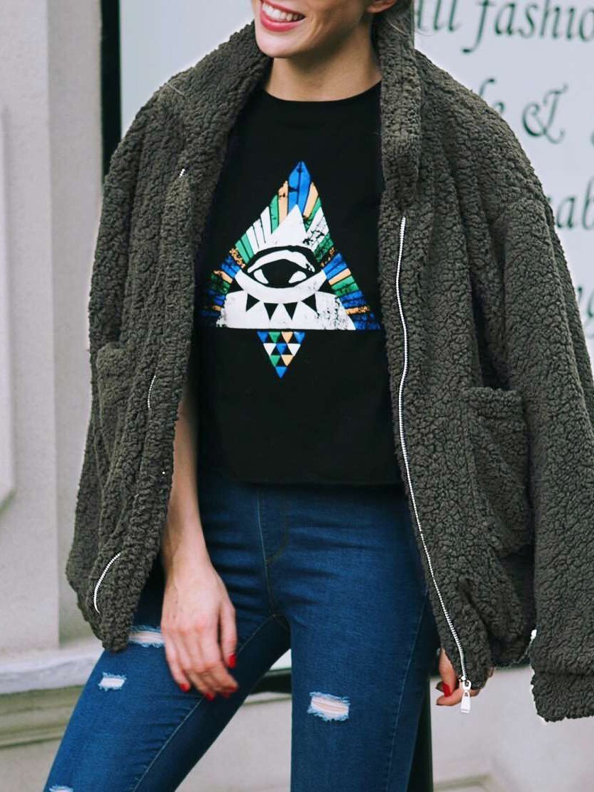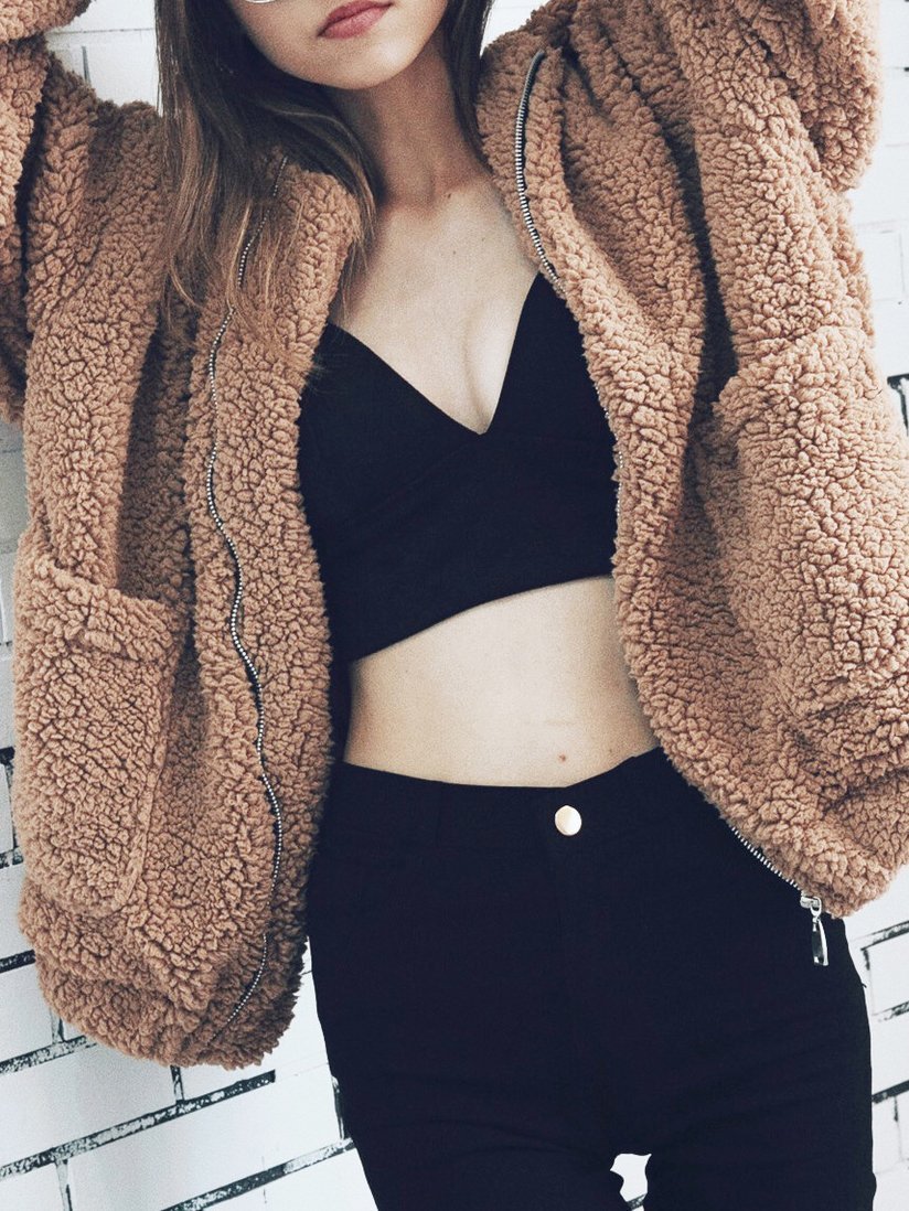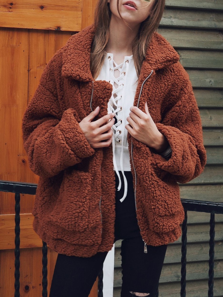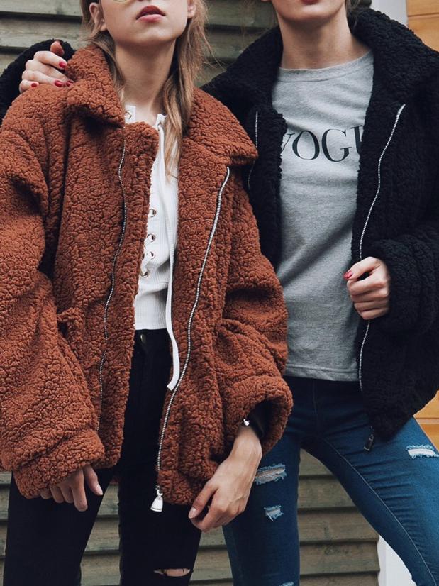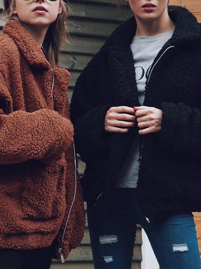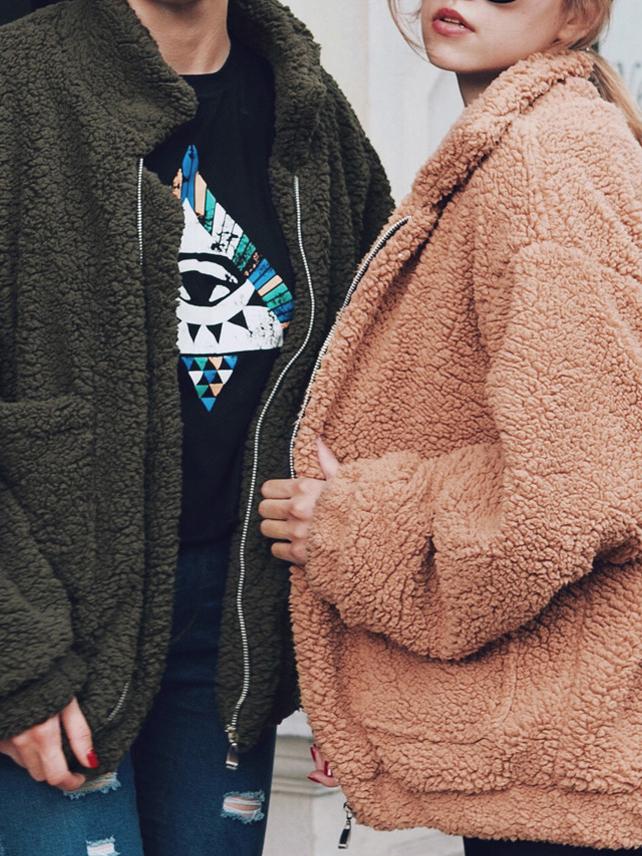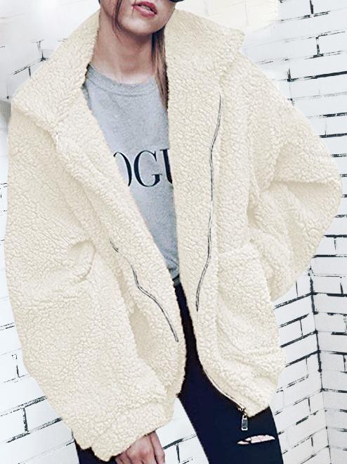 Women's Coats Loose Zipper Pocket Plush Long Sleeve Coat