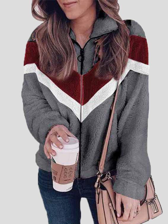 Women's Coats Plush Zipper Long Sleeve Contrast Coat