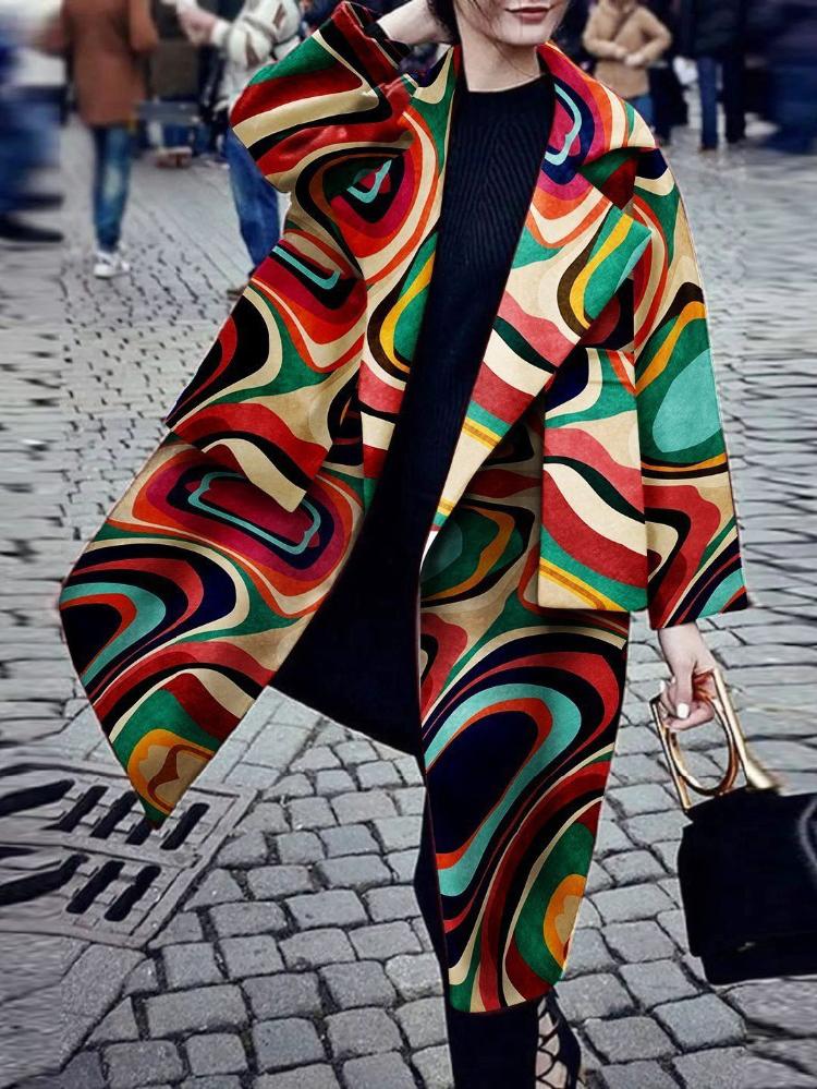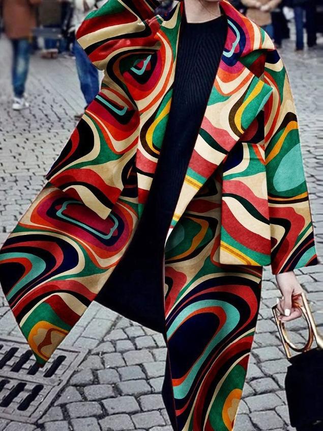 Women's Coats Printed Long Sleeve Warm Woolen Coat