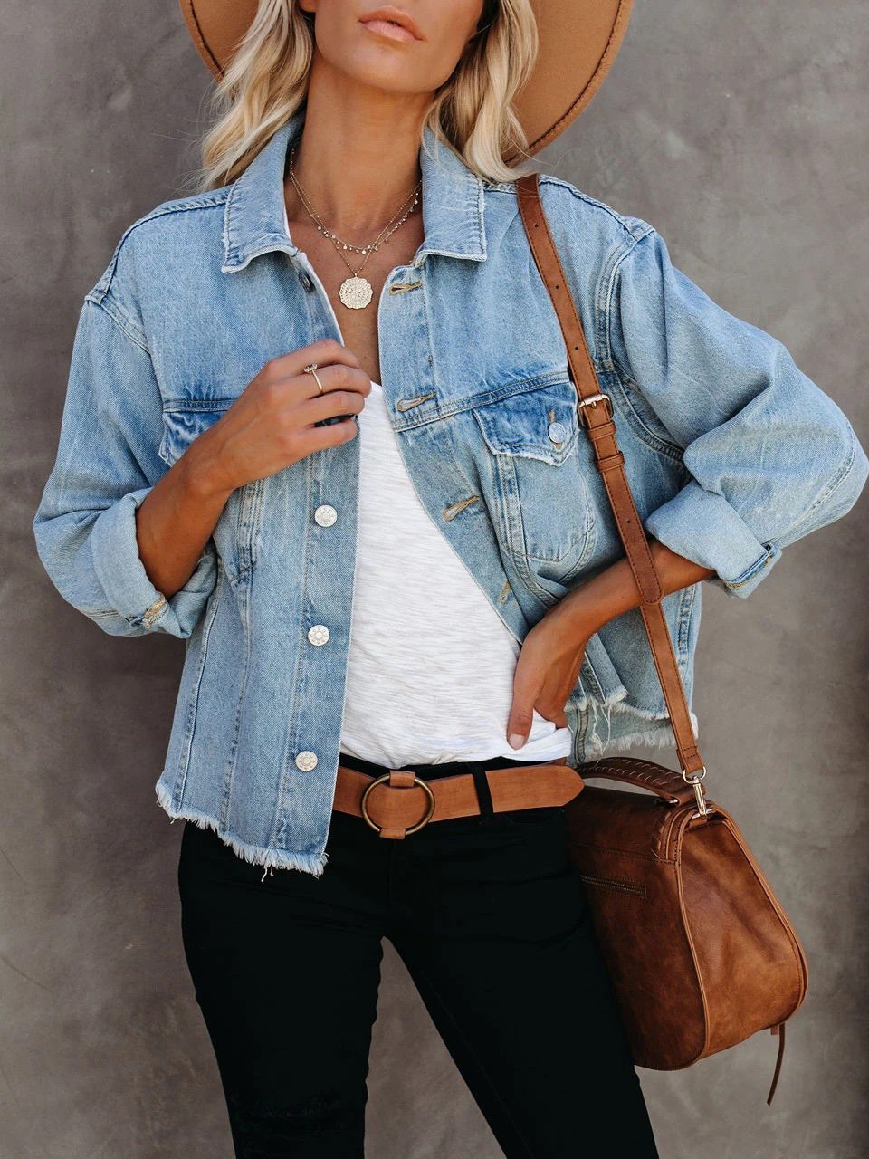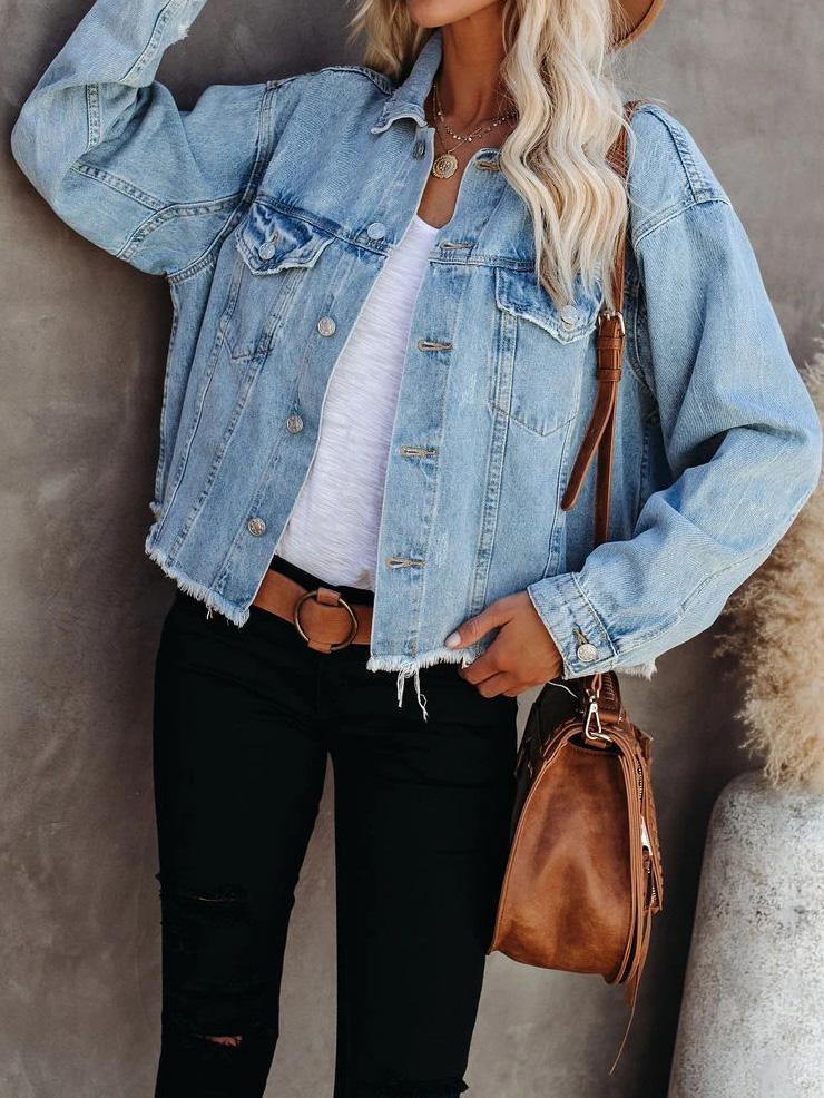 Women's Coats Short Loose Tassel Hem Denim Coat