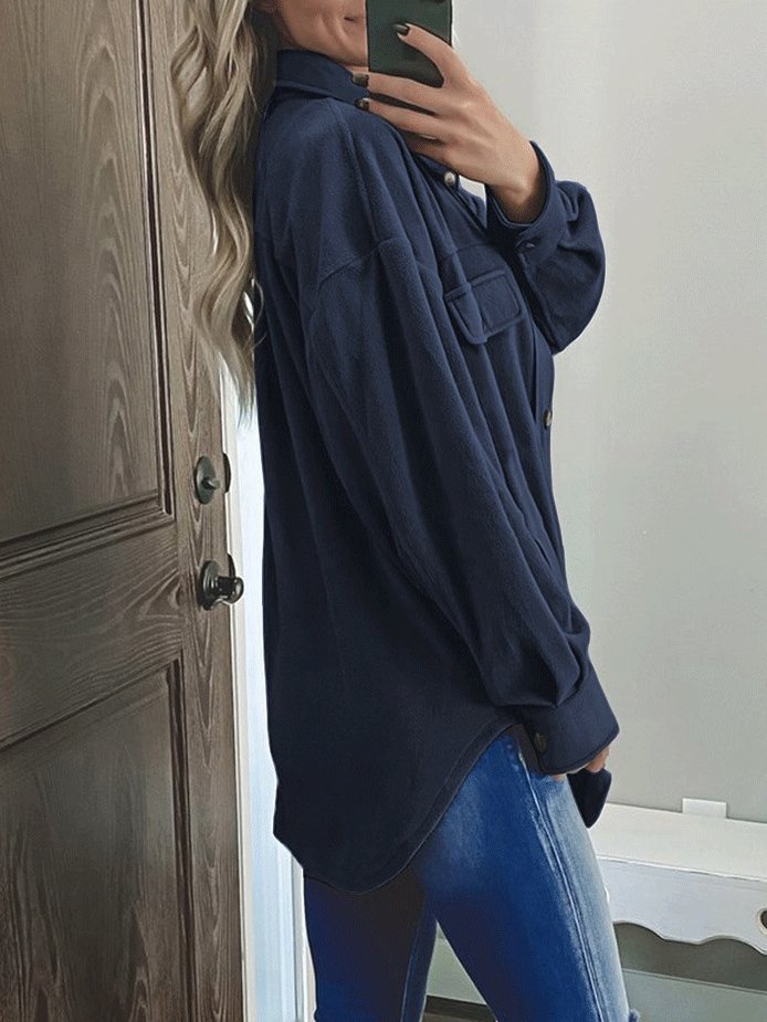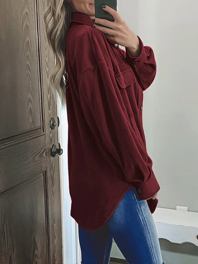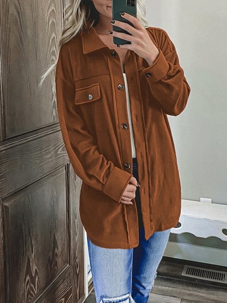 Women's Coats Solid Long Sleeve Lapel Single-Breasted Shirt Coat