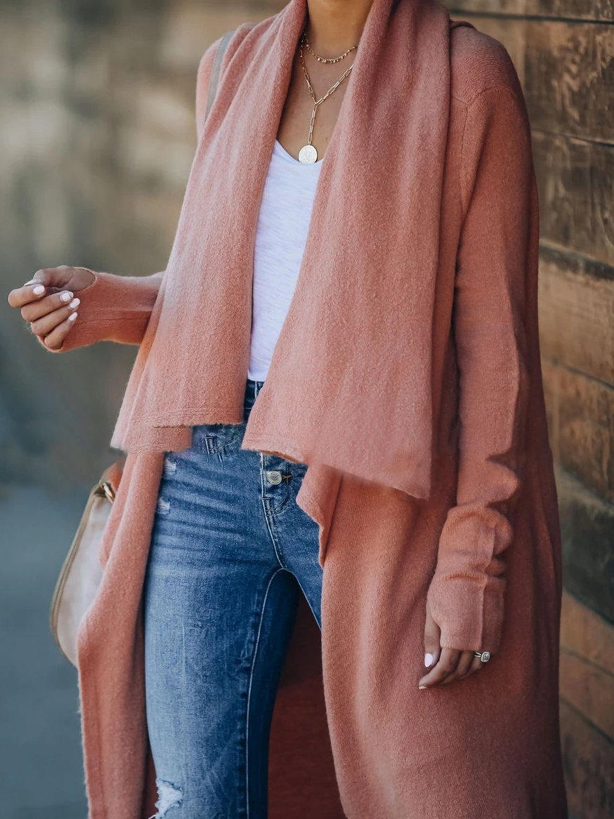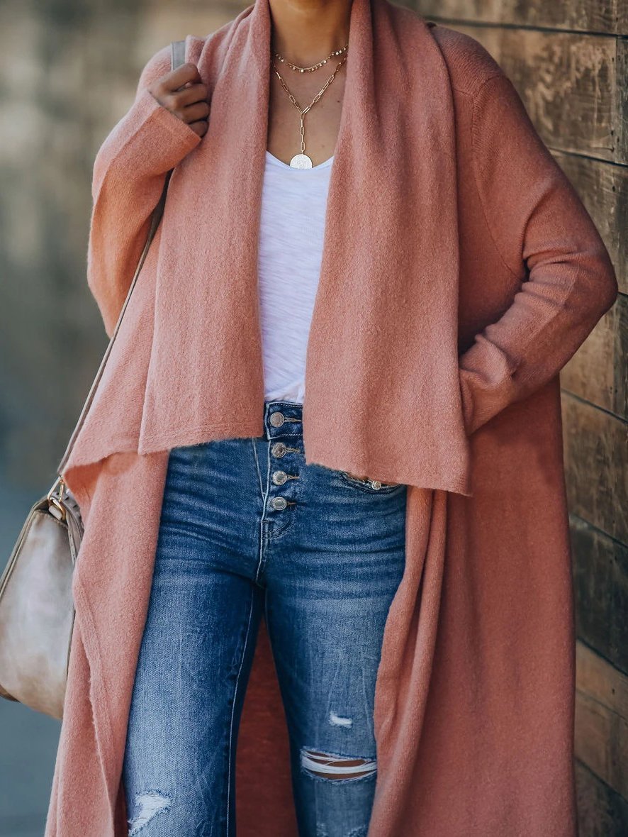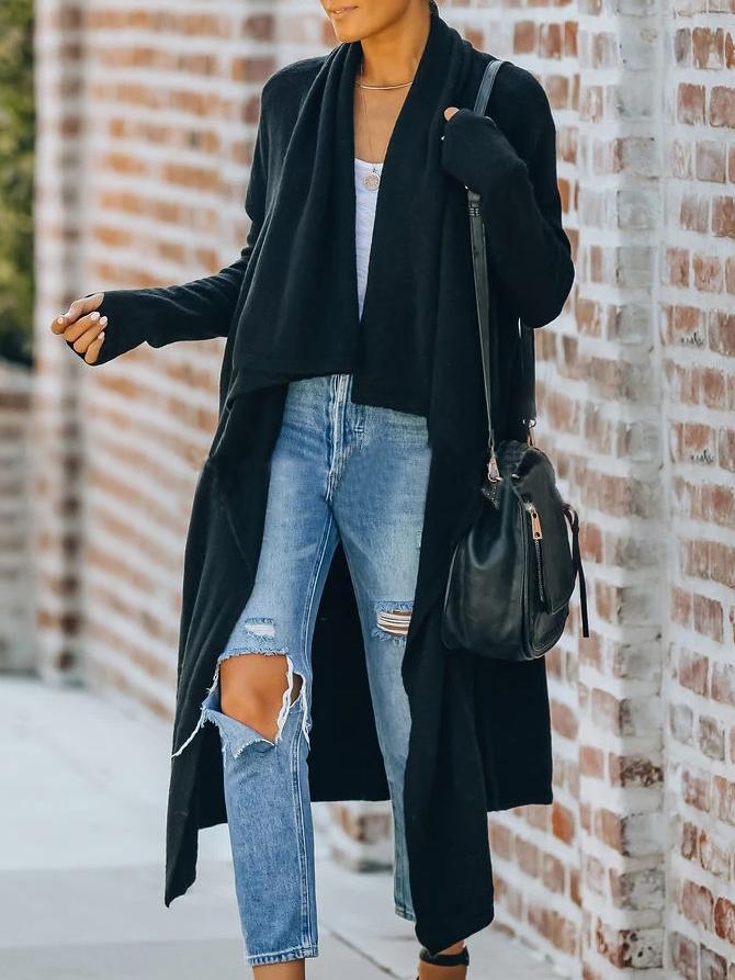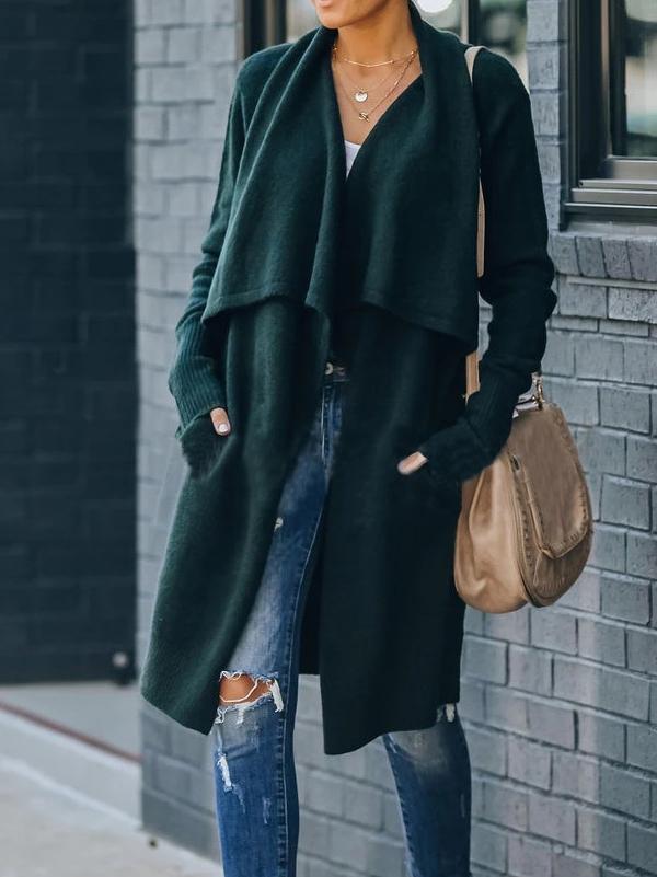 Women's Coats Temperament OL Tongle Long Sleeve Long Knit Coat