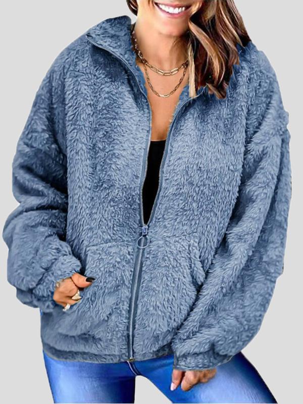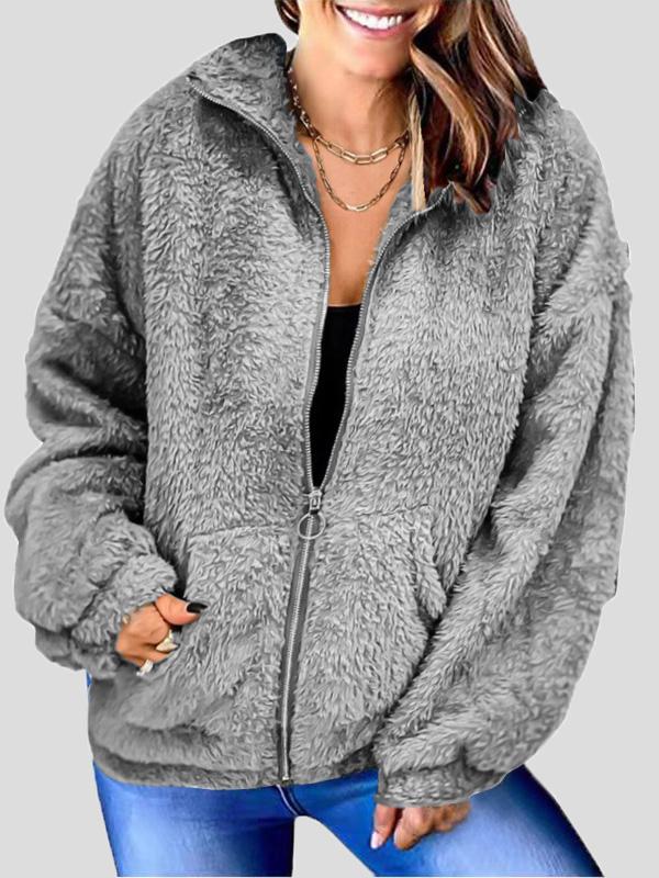 Women's Coats Woolen Fleece Loose Zipper Cardigan Pocket Coat