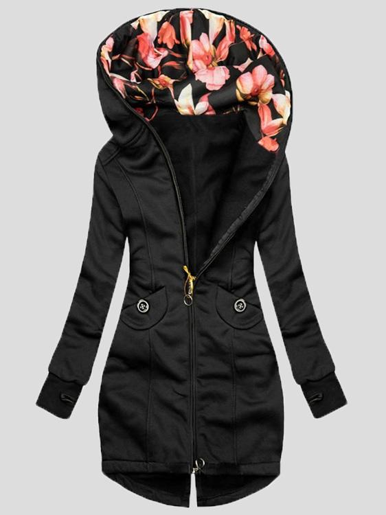 Women's Coats Zip Colorblock Printed Hooded Long Sleeve Coat